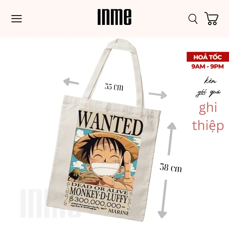 BST Luffy – Wanted _ Áo Thun Cotton & Túi Vải Canvas _ INME Studio