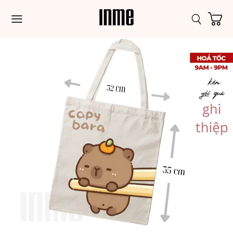 BST Túi Canvas và Áo Thun Cotton Họa Tiết Capybara Ngộ Nghĩnh – INME Studio